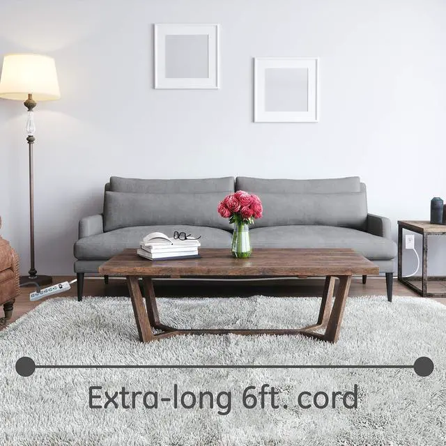 • Flat plug The 6ft. extension cord features a space-saving, angled flat plug, allowing you to easily plug in devices behind furniture when space is limited; unique angle keeps one outlet unobstructed and available for use