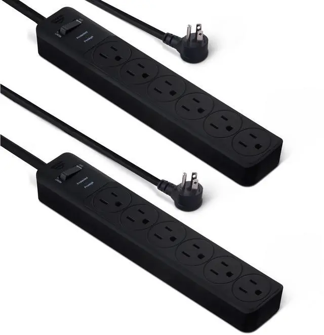 • 2-pack of 6-outlet power strip surge protector delivers reliable electricity and safeguards electronics from surges and outages