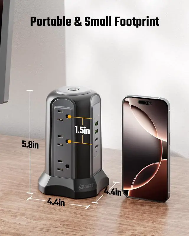 This USB C power strip is equipped with 5 rubber feet at the bottom, ensuring it stays in place and prevents any scratches to the desktop.