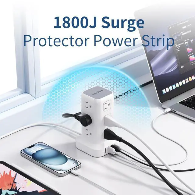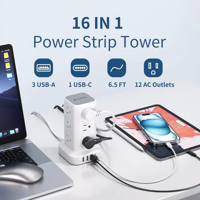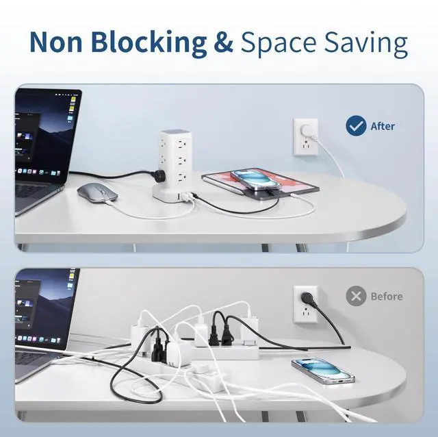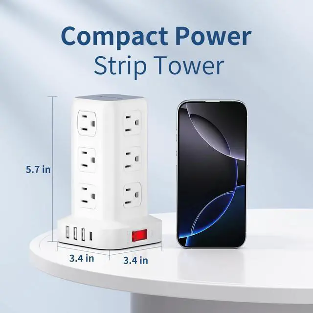 Space-saving Design: 4-side Compact Design Tower Power Strip