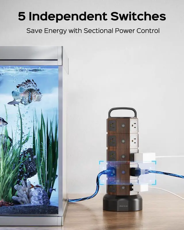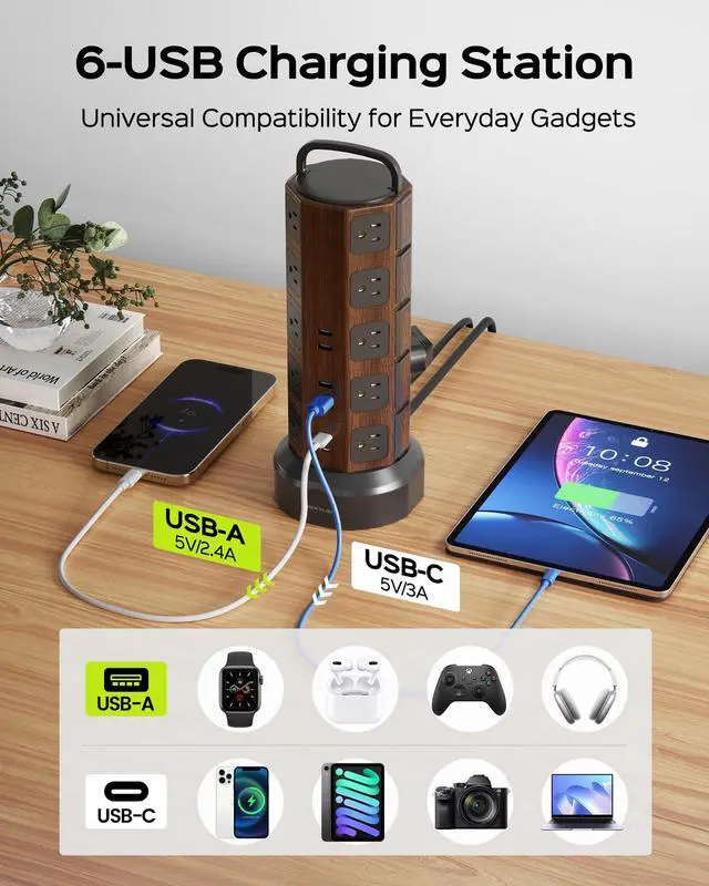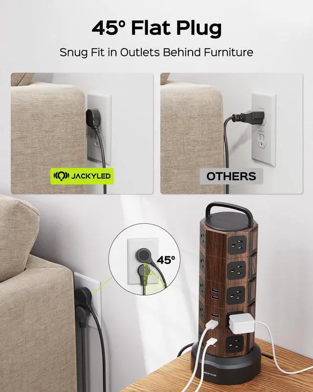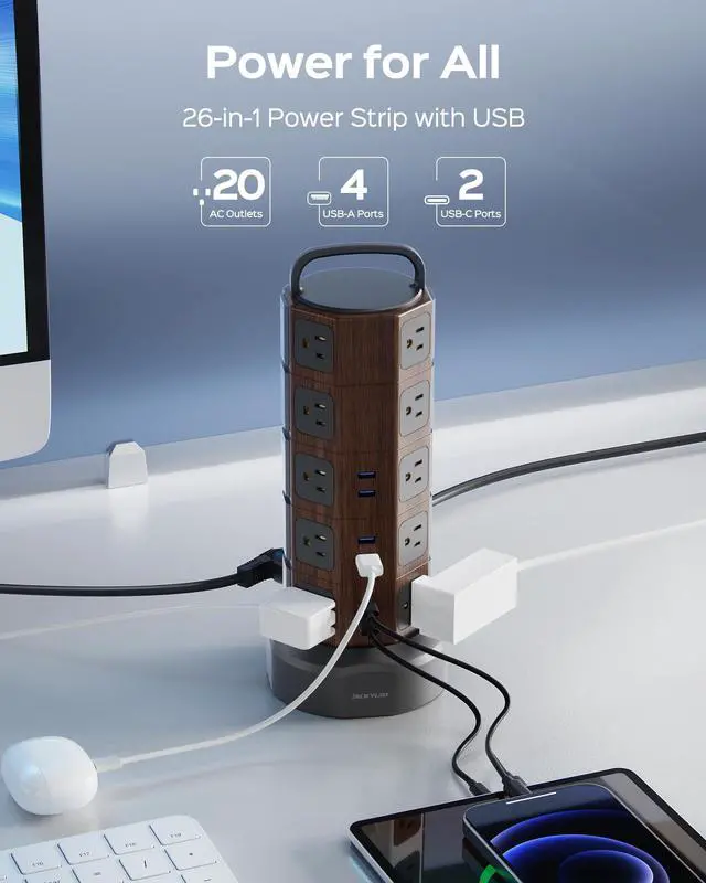 JACKYLED Power Strip Tower with 6 USB Ports