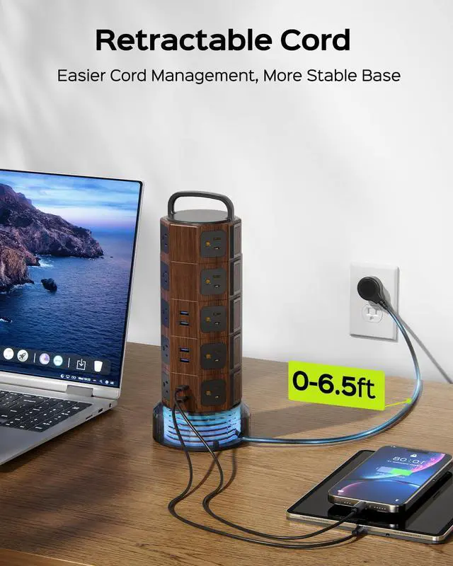 Hold the handle, and you can plug and unplug the adapter with easy, it is also convenient to move the power strip tower as you need.