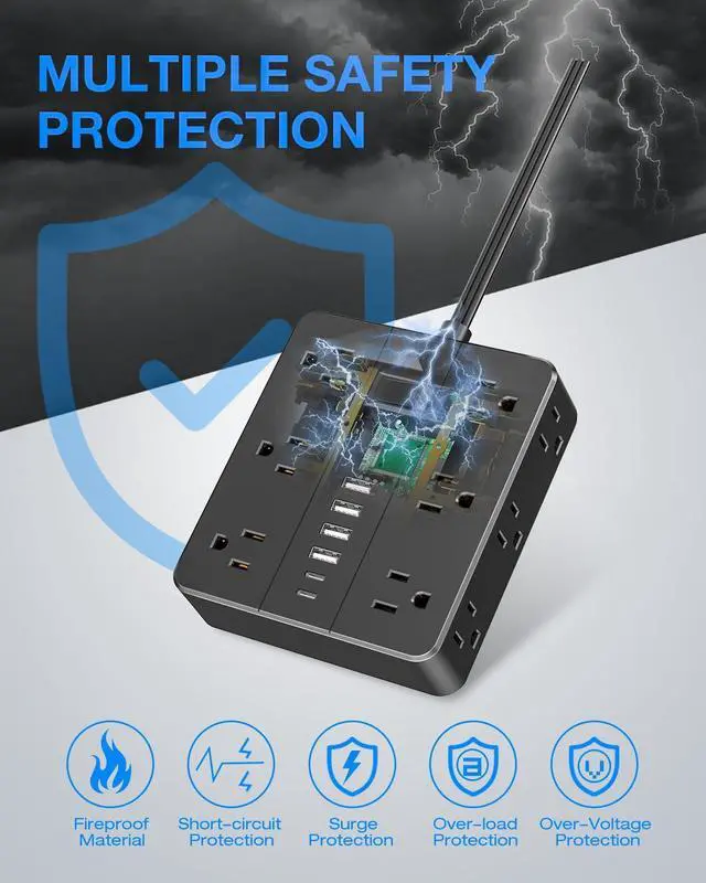 The base of the power strip has 6 durable silicone pads that are slip-resistant in order to prevent the socket from slipping unintentionally