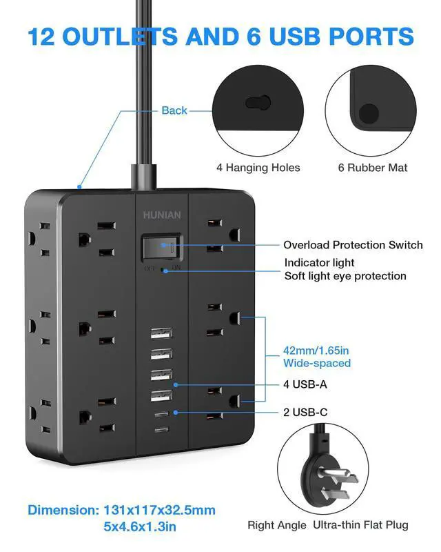 Larger spacing makes it easier to use for all kinds of equipment; Multiple outlets are suitable for the home, office, and college dorm room