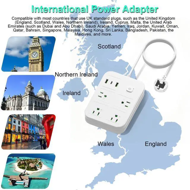 Compatible CountriesUK travel essentials is compatible with most countries using UK plugs, including the United Kingdom (England, Scotland, Wales, Northern Ireland), Ireland, Cyprus, Malta, the United Arab Emirates (such as Dubai and Abu Dhabi), Saudi Arabia, Yemen, Iraq, Jordan, Kuwait, Oman, Qatar, Bahrain, Singapore, Malaysia, Hong Kong, Sri Lanka, Bangladesh, Pakistan, the Maldives, and more.