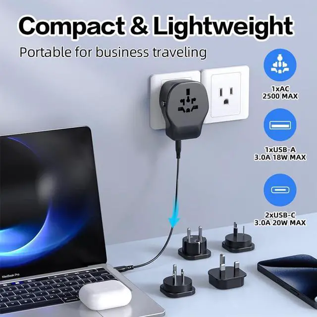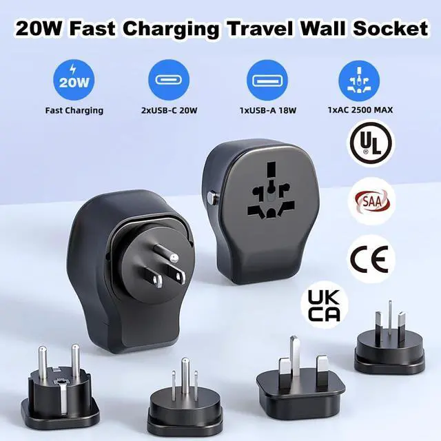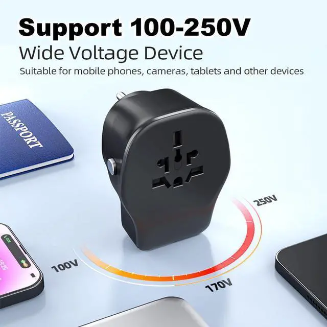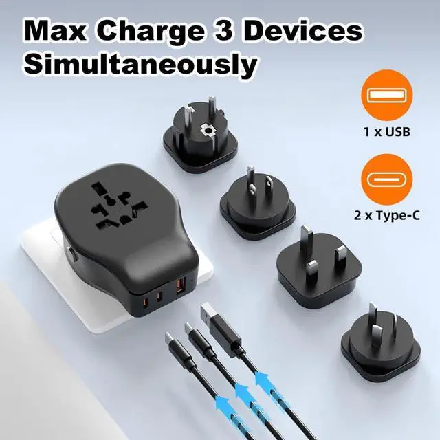 Universal Travel Adapter: Your device with type A/B/C/I/G can be easily converted to type A/B/E/F/I/G, with 3 USB charging ports (2xUSB-C and 1xUSB-A), you can charge 3 devices at a higher rate simultaneously, no need to carry extra adapter and power strip for your traveling. Ideal for cell phone, Pad, camera, power bank, etc.