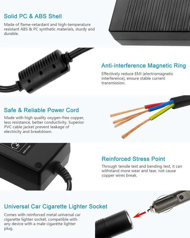Wide Compatibility: This 12v power supply works with almost all 12V under 120W automotive electronics with cigarette lighter plug, such as car refrigerator, car TV, car cleaner, car dash cam, car DVR video recorder, car Bluetooth FM transmitter, car air purifier, car humidifier, car massage cushion, car air fan, etc.