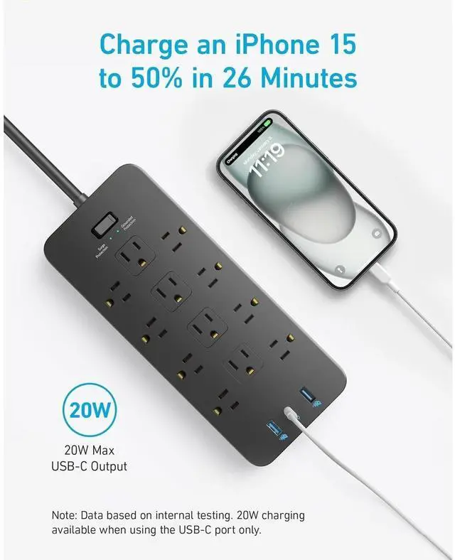 Fast Charge Your iPhone: Use the 20W USB-C port to give your iPhone 15 a high-speed charge from 0-50% in just 26 minutes