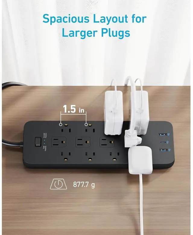 Optimized Layout: Designed with extra space between outlets to accommodate even the largest plugs