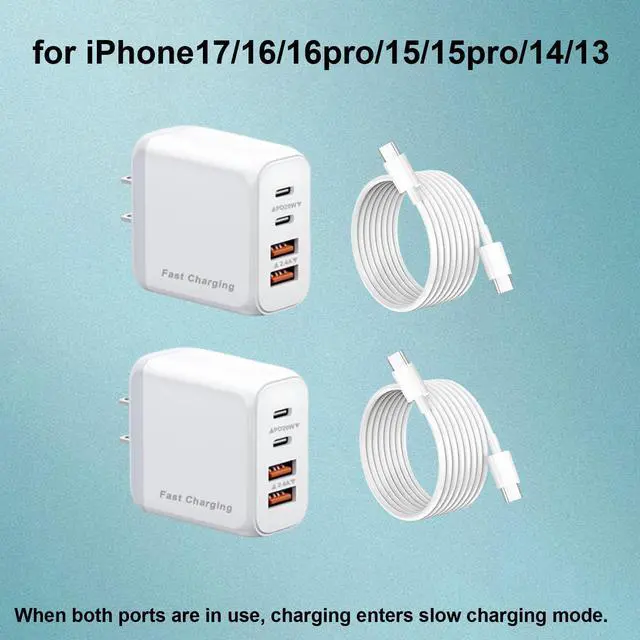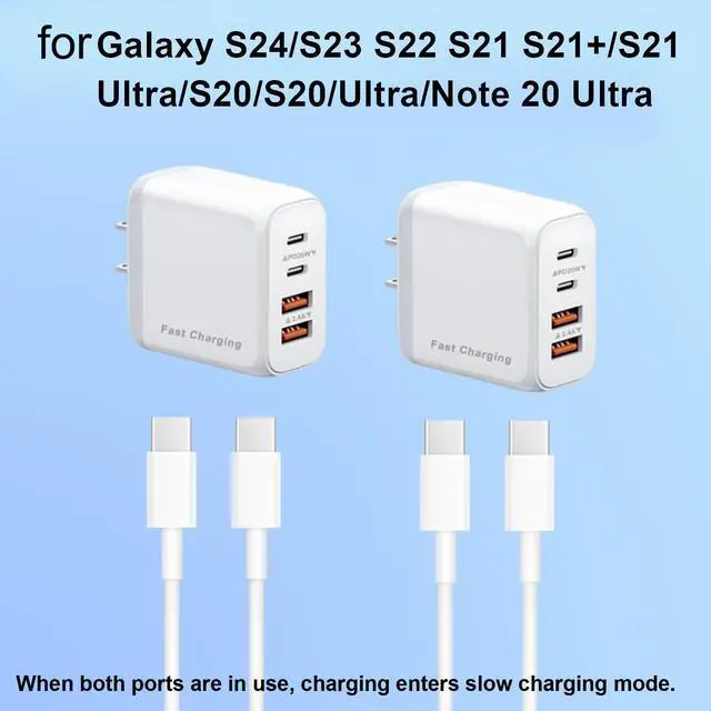 2 x 4-port USB C Wall Fast Charger Block with 4FT Cable