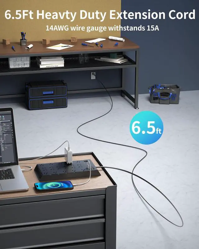 - The 6.5ft black extension cord comes with a cable holder to help you better organize your cords and always keep your space tidy.