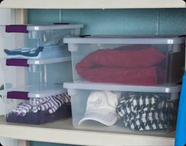 - Are you constantly searching for gloves, hats and mittens? If so, try keeping clear storage boxes stacked on a shelf near an entry way to help contain these items so you always know where to find them