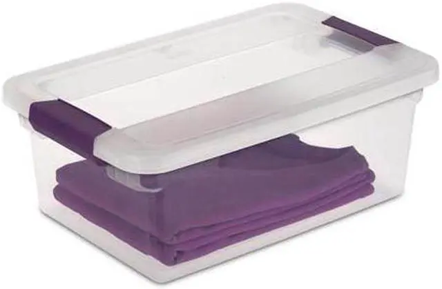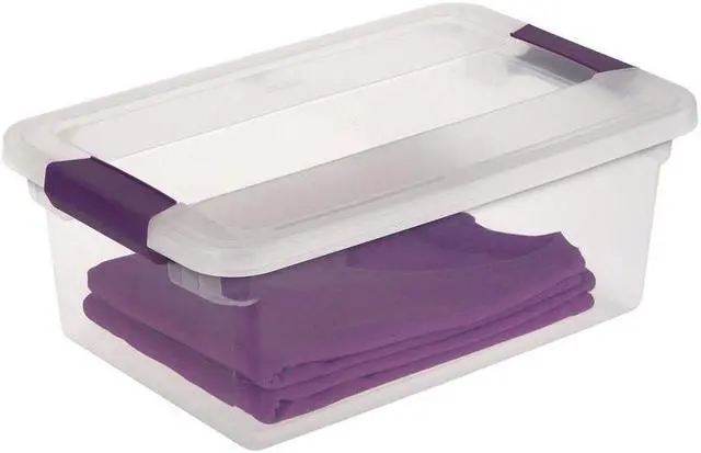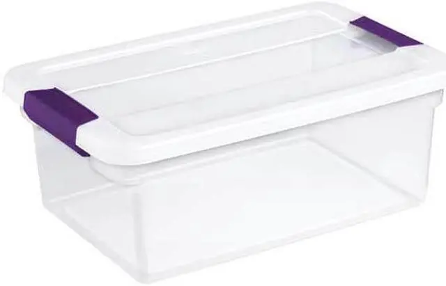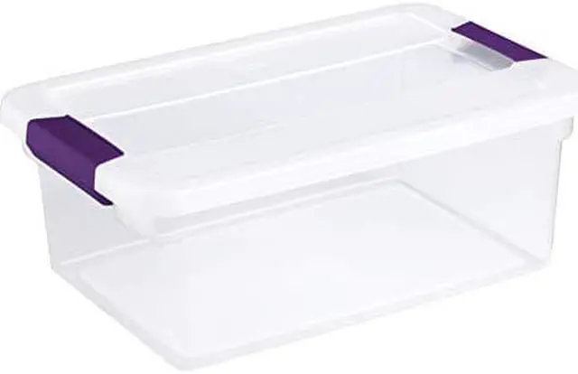 View Latch Box is ideal for storing shoes, accessories, toys, or arts and craft supplies, and conveniently fits on 16-inch wire shelving, great for closet or pantry organization. The clear base and lid allow contents to be easily identified from any angle. Color accented latches secure the lid to the base, yet are still easy to unlatch. The indexed lids allow same size storage boxes to stack neatly on top of each other to use vertical storage space efficiently. The 15-quart and 27-quart Clear