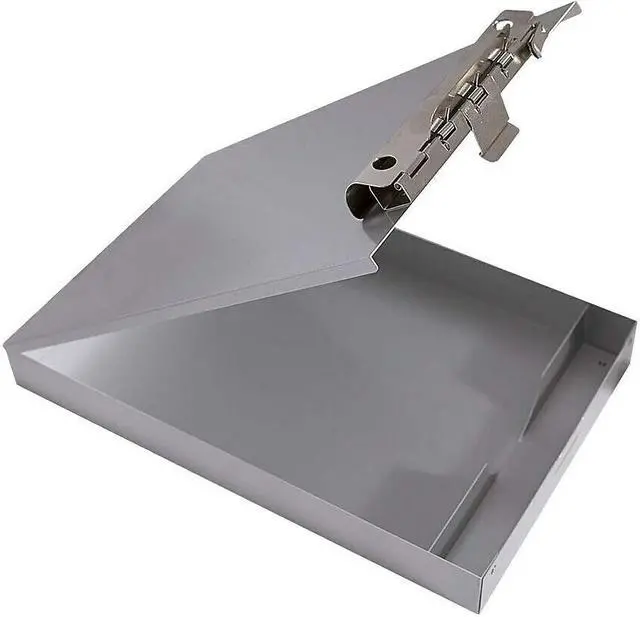 Storage Clipboard, File Size - Clipboard Letter, Clip Capacity 1 in, Clip Type High Capacity, Color Family - Clipboard Silver, Color Silver, Storage Opening Type Top, Basic Material - Clipboards Metal, Specific Material Aluminum, Width 9 in, Height 14 3/16 in, Depth 1 1/2 in, Sheet Size - Clipboards 8-1/2 in x 11 in, Storage Capacity 1-1/2 in, Storage Clipboard. This item has been restricted from sale in the following state (s): []