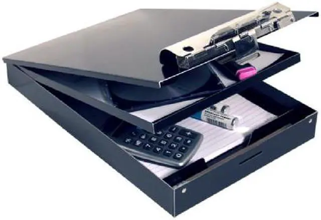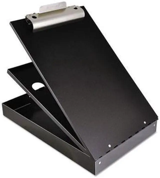 Storage Clipboard, File Size - Clipboard Letter, Clip Capacity 1 in, Clip Type High Capacity, Color Family - Clipboard Black, Color Black, Storage Opening Type Top, Basic Material - Clipboards Metal, Specific Material Aluminum, Width 9 1/4 in, Height 13 3/4 in, Depth 1 1/2 in, Sheet Size - Clipboards 8-1/2 in x 11 in, Storage Capacity 1-1/2 in, Storage Clipboard. This item has been restricted from sale in the following state (s): []