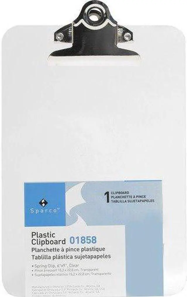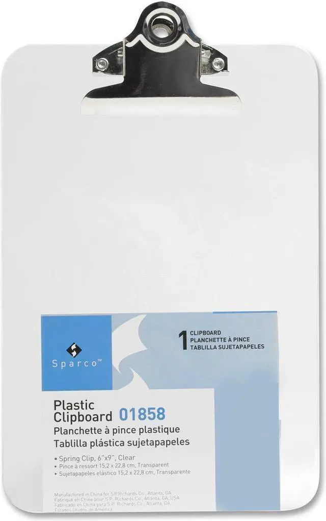 Compact clipboard provides a stylish, functional way to write when you're on-the-go and working without the convenience of a desk. This 6" x 9" size fits well in smaller bags and briefcases or on crowded countertops. Sturdy spring clip secures paper and is made of durable metal. Clipboard is made of durable molded plastic for lasting use.