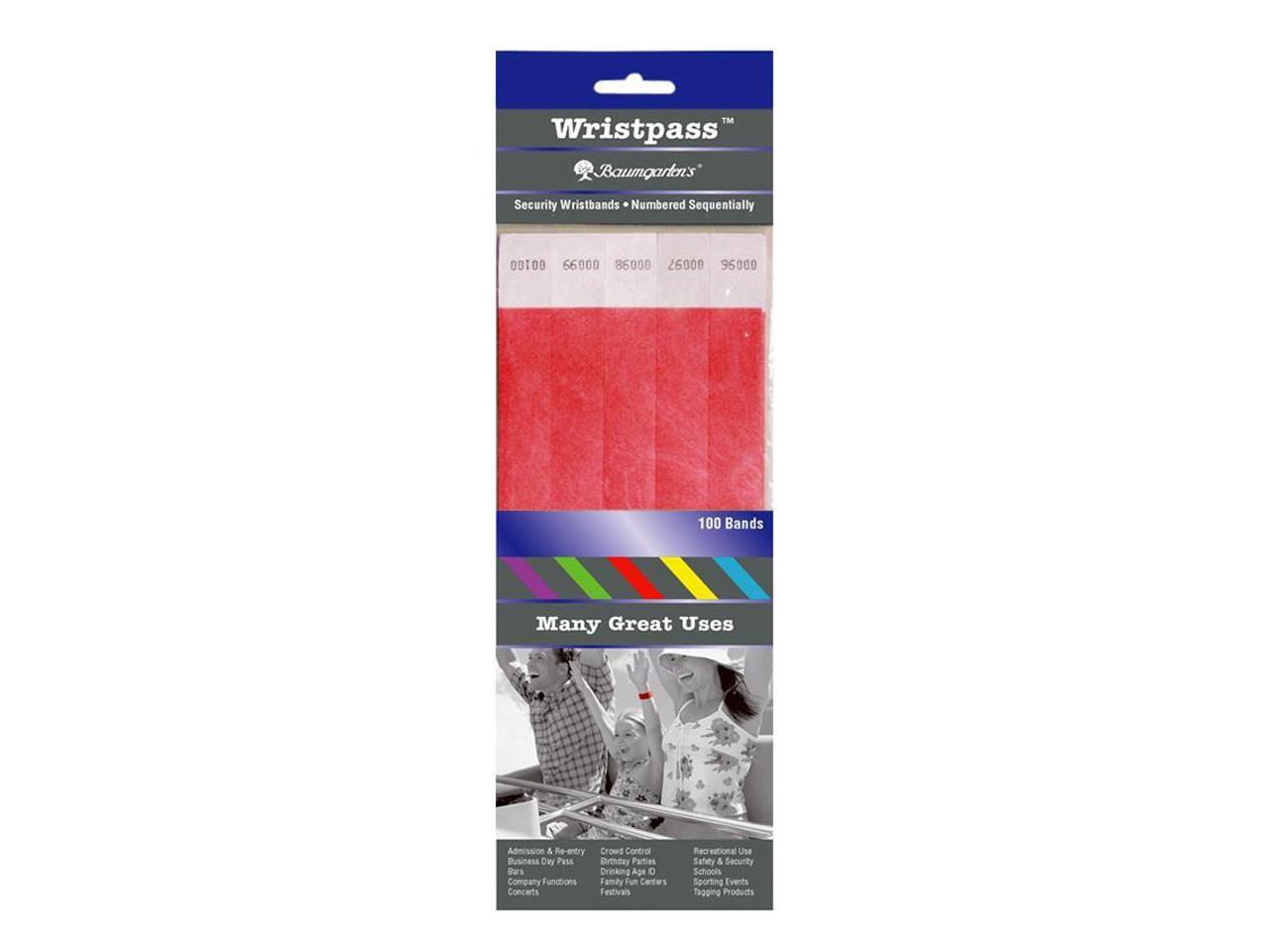 SICURIX Sequentially Number RED Security Wristbands 100 Pack RED (85020)