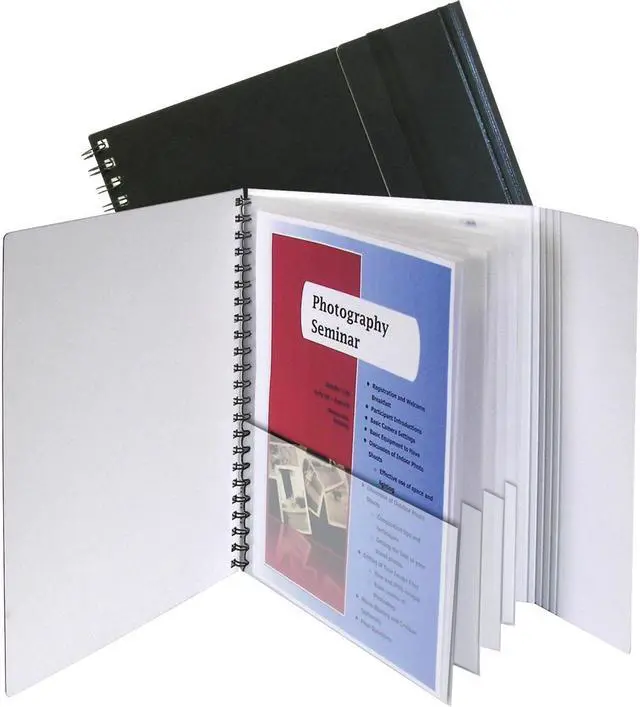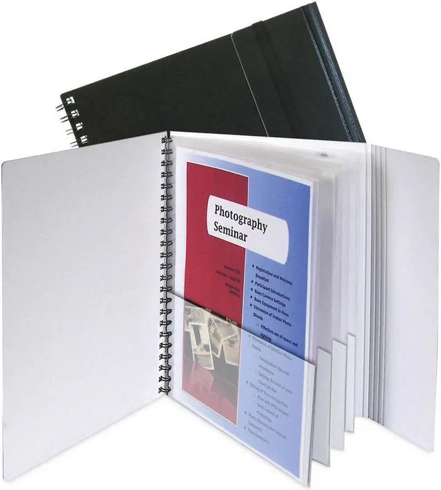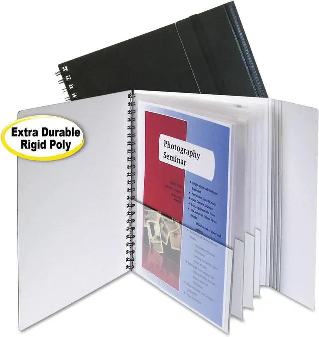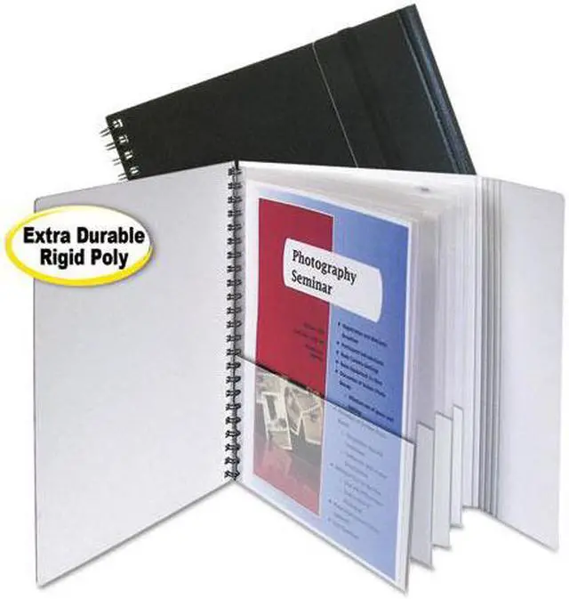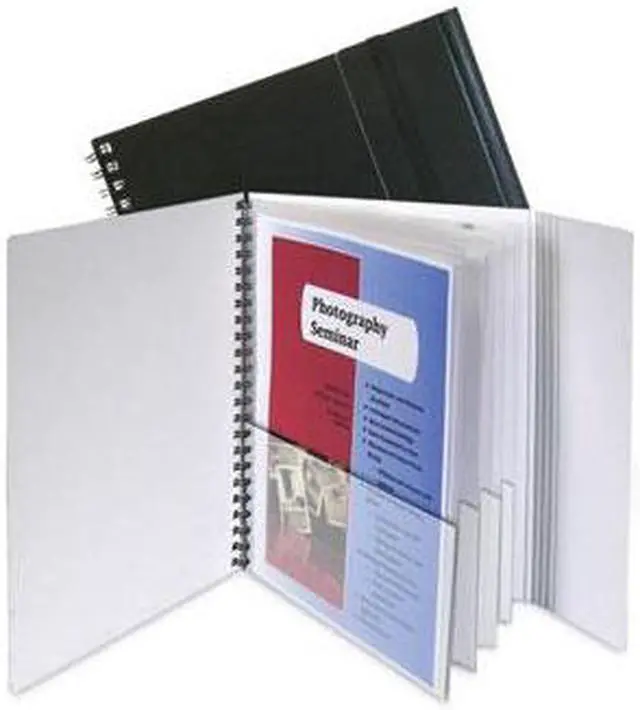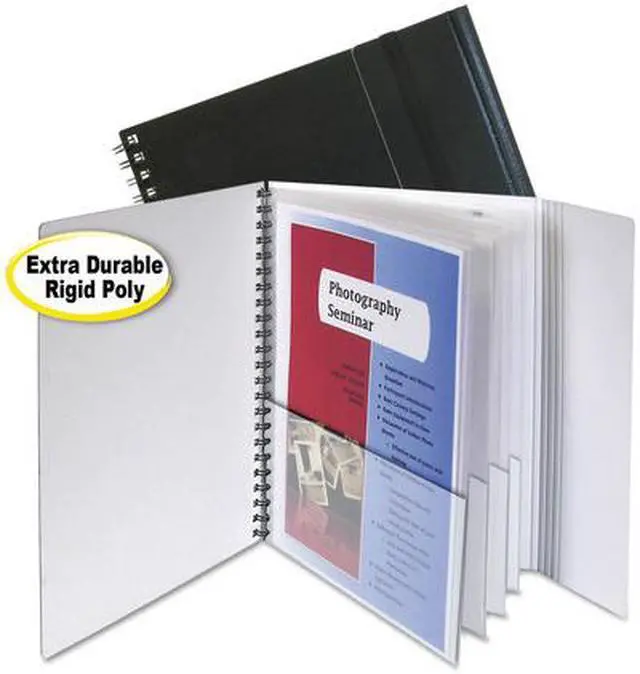 Eight-Pocket Portfolio with Security Flap, Polypropylene, 8.5 X 11, Black/WhiteFlap and elastic closure secures materials while in transport. Black exterior with contrasting white interior. For 8 1/2" x 11" document storage.