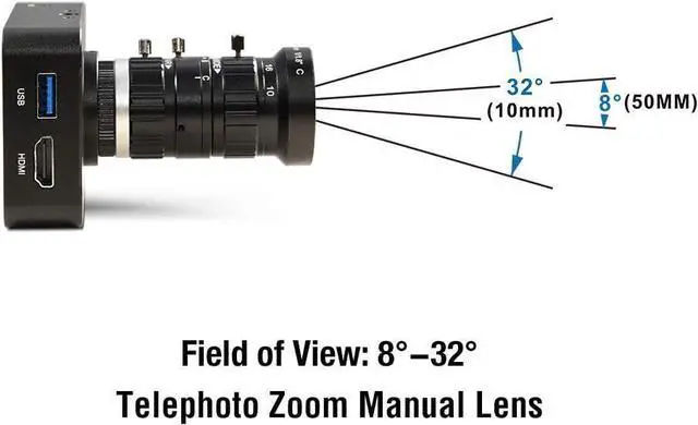 10-50MM Telephoto Zoom Manual LensField of View: 8°-32°Can capture more Scene detail and clearer imageIt is ideal camera for Live and webcast.