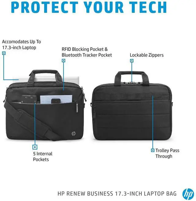 Product Information Maximum Screen Size Supported 17.3" General Information Product Type Carrying Case Manufacturer Part Number 3E2U6AA Manufacturer HP Inc. Product Name Renew Business 17.3 Laptop Bag Product Line Renew Brand Name HP Miscellaneous Application/Usage Notebook Accessories Compatibility HP - Elite Dragonfly G2 470 G8 Brand Compatibility HP Physical Characteristics Weight (Approximate) 1.30 lb Height 17.7" Width 13.2" Depth 2"