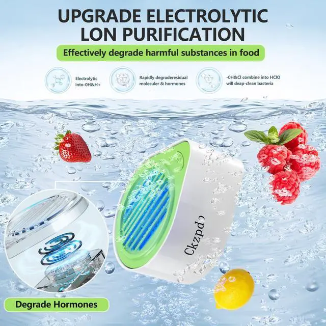 In today's increasingly serious food safety issues, Ckzpdo Fruit and Vegetable Washers provide you with professional-grade ingredient purification solutions through innovative hydroxyl purification technology. The product uses electrolysis of water to generate highly active hydroxyl radicals (-OH), whose oxidizing power far exceeds that of traditional ozone or ultrasonic technology, with a purification rate of up to 99.9%, leaving no place for dirt to hide in the blind spots of hand-washing, such as the skin of apples and the folds of leafy greens.