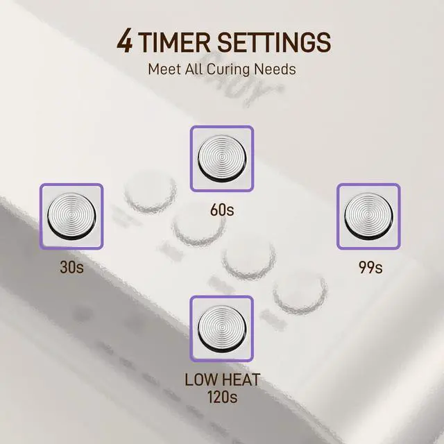 Smart Sensor & Adjustable Timers: The built-in smart sensor activates the lamp automatically when your hand is placed inside, no manual operations needed. Choose from 30s, 60s, 99s, or the 120s automated setting for different curing needs