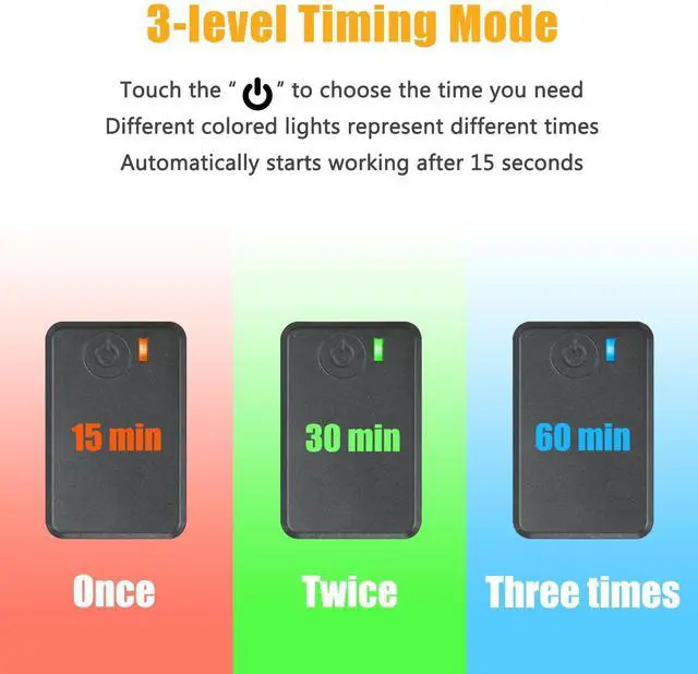 Touch the "SWITCH“to choose the time you need, Different colored lights represent different times Automatically starts working after 15 seconds