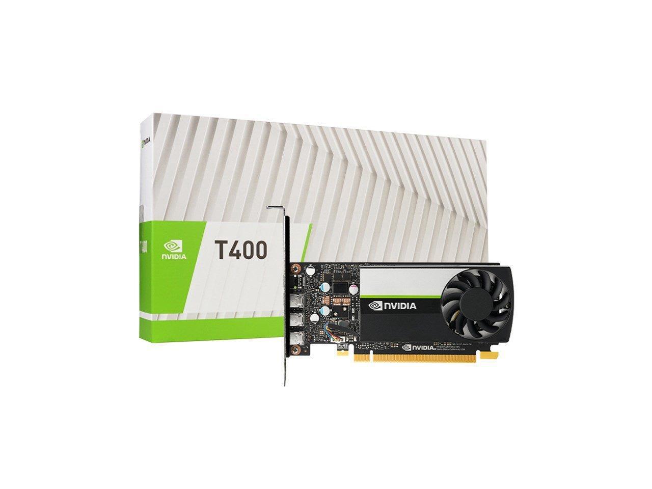 - NVIDIA Quadro T400 4GB Graphics card 4GB GDDR6 PCIe3.0x16 low profile 3x Mini DisplayPort - retail boxed - Board,Quick start Guide,Support Guide,ATX I/O bracket attached + LP I/O bracket loose.Mini DP to DP donglex3