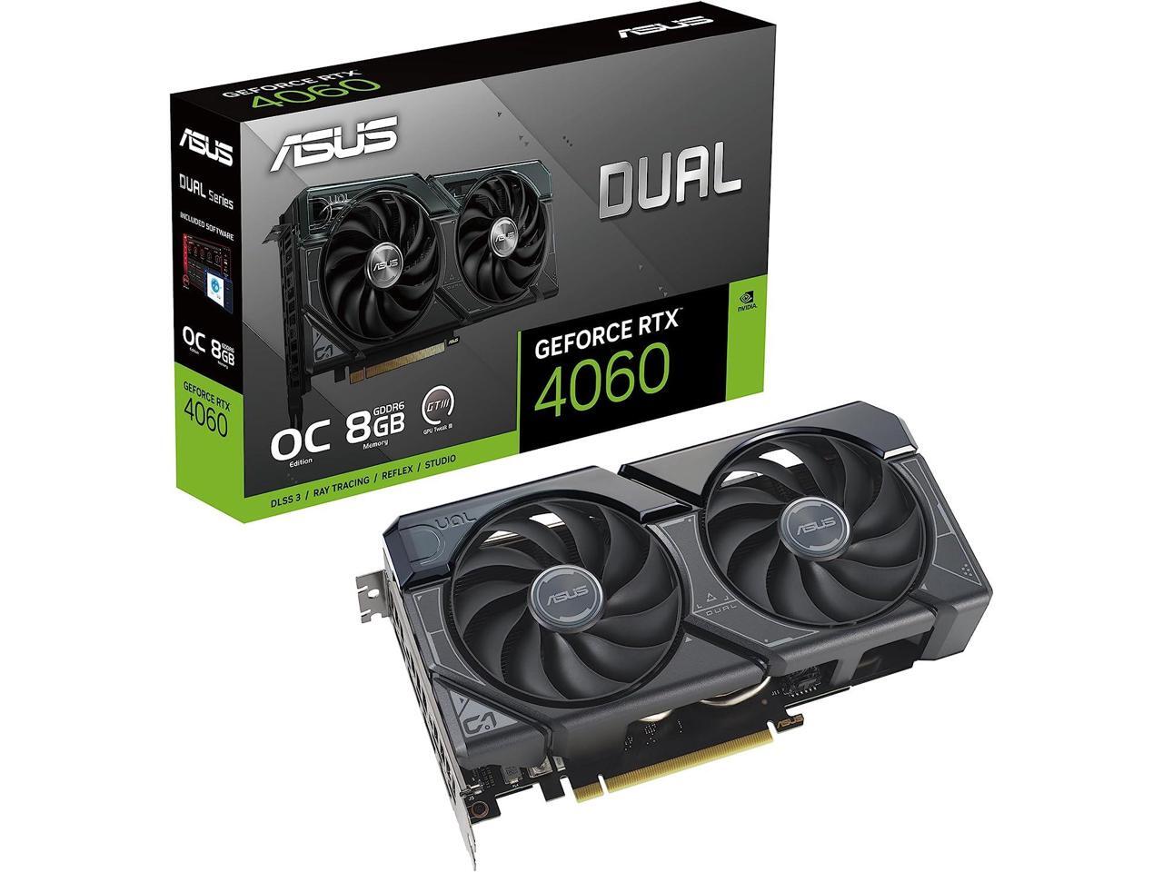 ASUS Dual GeForce RTX 4060 OC Edition 8GB GDDR6 (PCIe 4.0, 8GB GDDR6, DLSS 3, HDMI 2.1a, DisplayPort 1.4a, 2.5-Slot Design, Axial-tech Fan Design, 0dB Technology, and More)