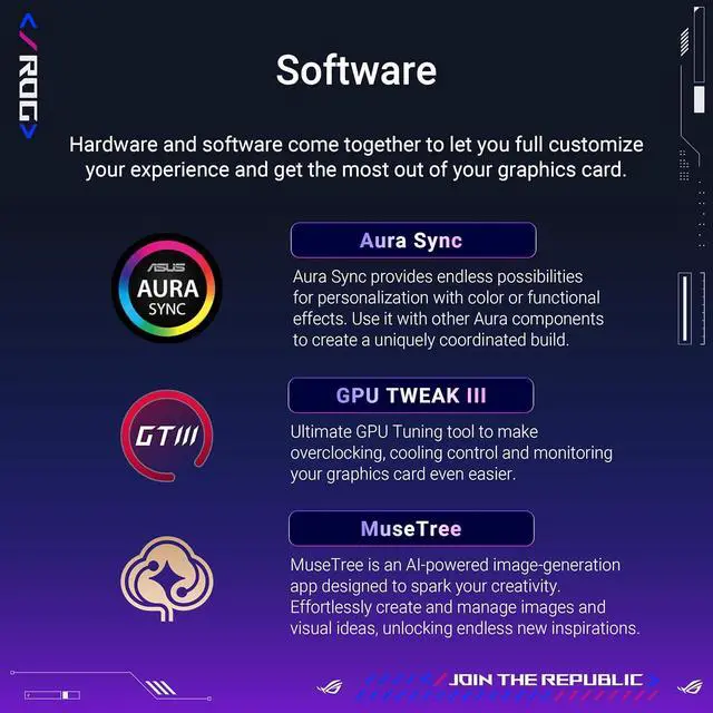 Cooling System: Quad-Fan Force design with four Axial-tech fans, a patented vapor chamber, and a phase-change thermal pad for improved heat transfer..
