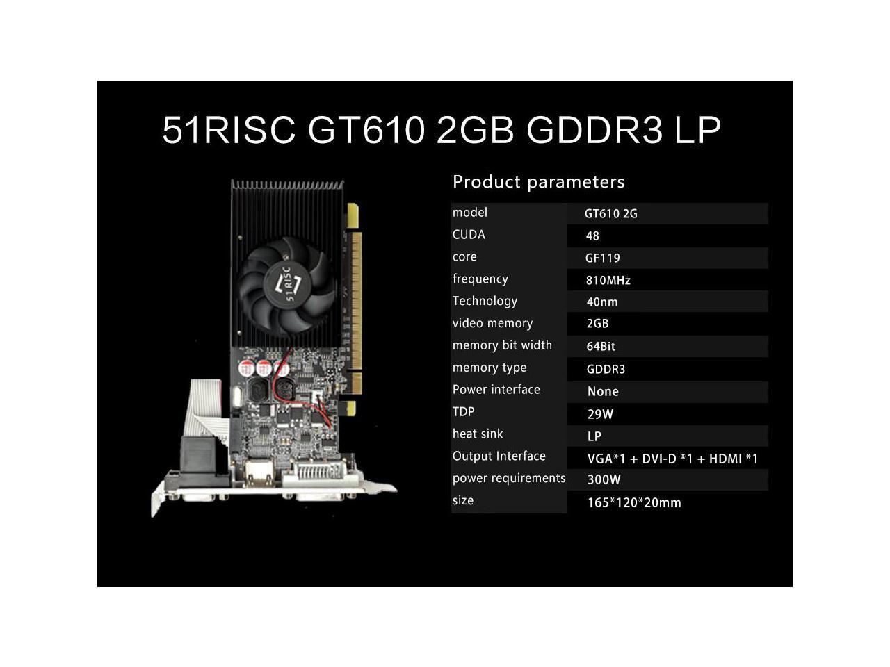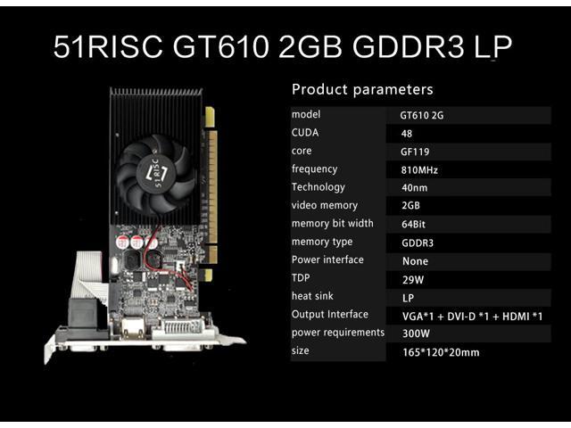 51RISC GT610 2GB Graphics Card, GT 610 2G DDR3 64bit, Desktop Graphics Card for Business Office, PCI E 1.1 x 16, DVI, VGA, HDMIs, PC Video Card, Single Fan