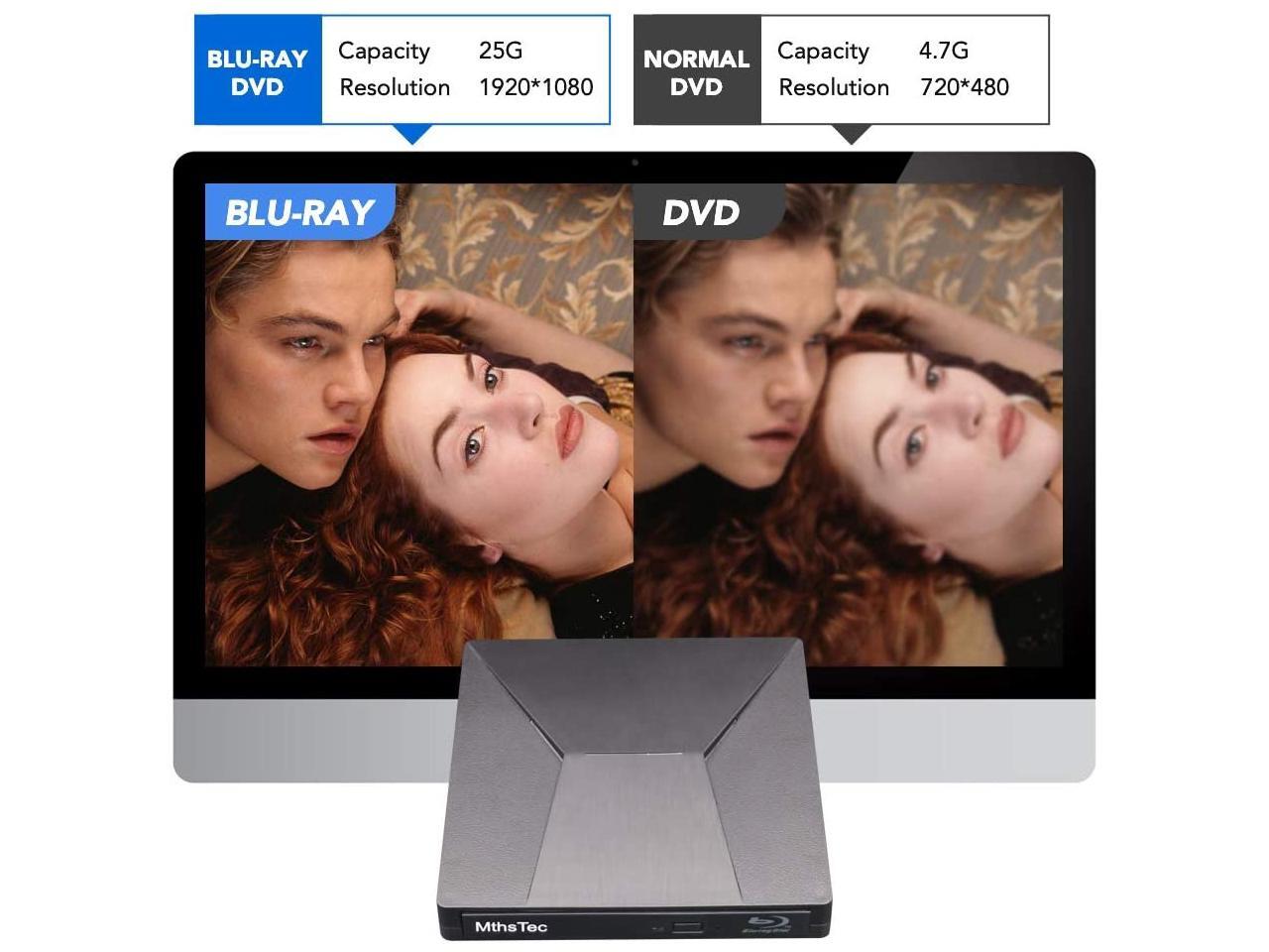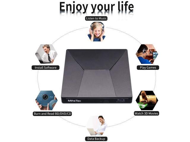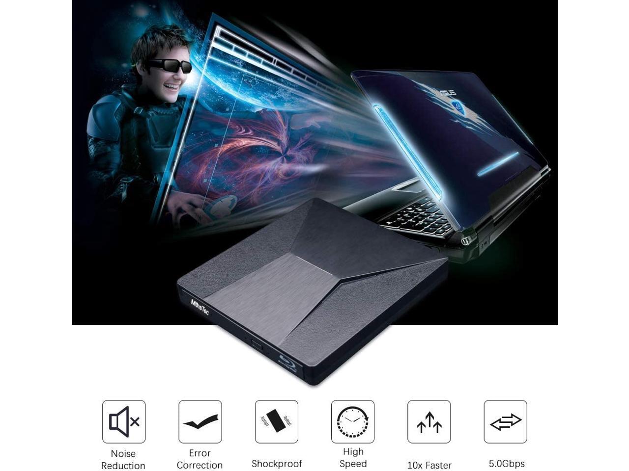 External Bluray DVD Drive, MthsTec USB 3.0 and Type-C Blu-Ray Burner DVD Burner 3D Slim Optical Bluray CD DVD Drive Compatible with Windows XP/7/8/10, MacOS for MacBook, Laptop, Desktop