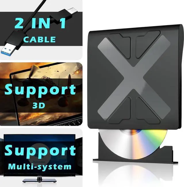 Portable Blu-Ray Player: The unique design of our external blu ray burner combines both the drive and 2 different USB cables in one. This feature helps users to easily store and traffic the Blu-ray drive without taking up too much space or risking losing one or both cables.