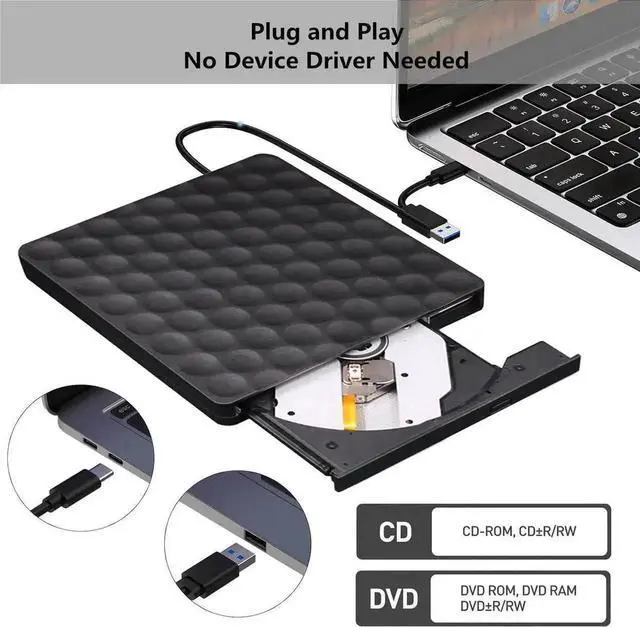 - USB optical drive produces almost no noise while processing discs and thus won't be disturbing.