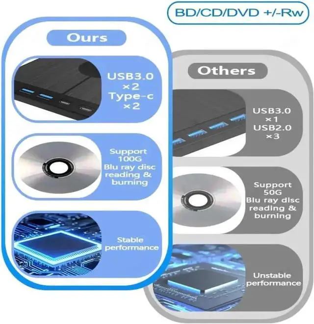 ![Alt view image 4 of 7 - External Blu Ray CD DVD Drive, [7 in 1] USB 3.0 Type-C 3D Blu-ray DVD Burner Slim Optical External Bluray DVD Burner with SD/TF Card Slot 2 USB 3.0 & 2 Type-C Ports for Laptop PC Windows Linux MacOS](https://c1.neweggimages.com/productimage/nb640/C1DRS2510090FNHHZF5.jpg)