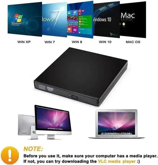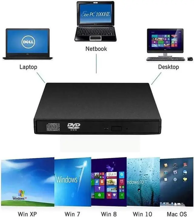 With portable and compact design, it is convenient for you to view DVD movies, listen to CD music, watch photos or images and copy music, video, or data to a CD(only CD).