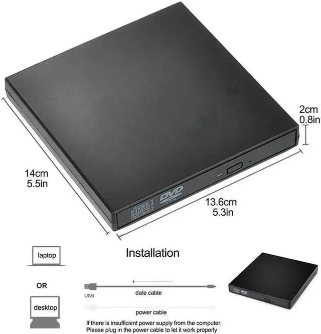 This slim USB2.0 CD-RW writer/drive fits with any laptop and desk computers with USB port. With a power cord, there is no worry about power shortage when connect it to the desktops.