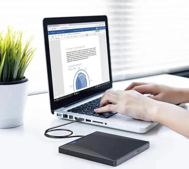 With an eject button so that you never have to worry about your disc getting stuck inside this external drive. In addition, cable slot design works well to collect the cable.