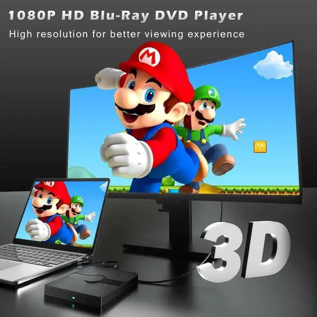 - 3D Ultra HD USB CD Drive: Wbacon USB 3.0 & Type-C external Blu-ray drive offers support for 3D playback and delivers high nearly to 4K. However, it's important to note that the drive does not support the playback of 4K Ultra HD discs. It is essential to have playback software on the computer that supports the Blu-ray format. If copyrighted external blu-ray drives have zone bit code protection, you need to download the shielding software Any DVD to decode the zone bit code.