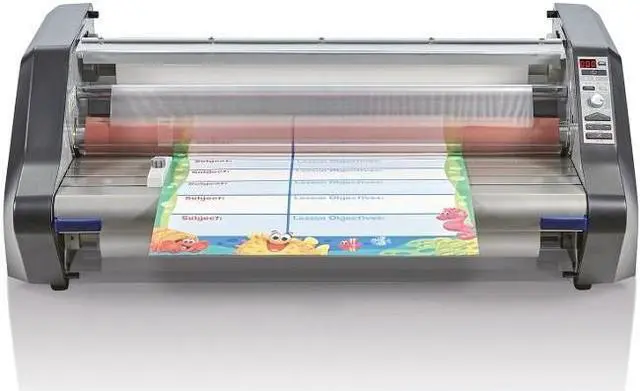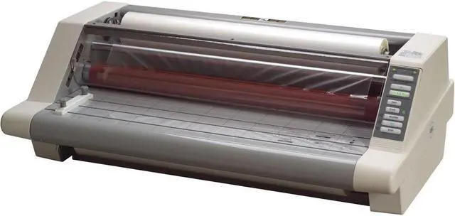 GBC® HeatSeal® Ultima® 65 roll laminator laminates items up to 27 inches wide. Uses up to 3.0 mil NAP I roll film. Features infrared heated rollers. Warms up in 10 minutes and laminates up to 10 feet per minute. Built-in trimmer, auto shut-off and one-touch keypad.