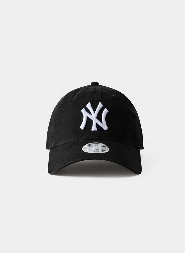 This is a New Era 9TWENTY strapback. It features raised New York Yankees embroidery and an adjustable strap for a customizable fit. Its made with 100% cotton twill and specially designed in a womens fit for a more flattering look. \n \nFeatures \n \nAdjustable strap \n \nEmbroidered New Era logo \n \nRaised New York Yankees embroidery \n \nMaterials