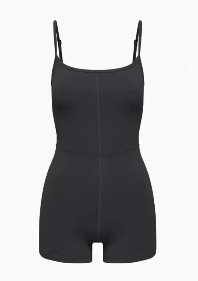 \nConstructed with Aritzia's signature Golden BUTTER fabric, this romper is luxuriously soft, lightweight, and highly breathable. The 5" inseam ensures just the right amount of coverage to maintain both comfort and modern flair. Its tailored fit effortlessly complements your silhouette, while the classic black color adds a touch of timeless elegance to your look. \n \nEvery detail of this romper reflects meticulous craftsmanship, from its clean lines to its premium stitching, making it a reliable choice for any occasion. Whether you're layering it during colder seasons or wearing it on its own in warmer climates, this romper is as versatile as it is stylish. \nYour Go-To Outfit for Any Occasion