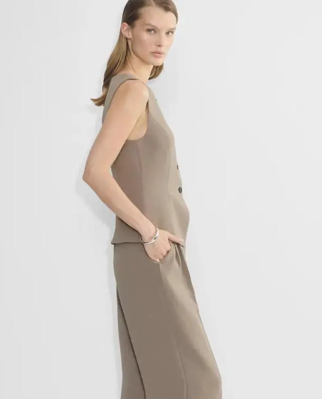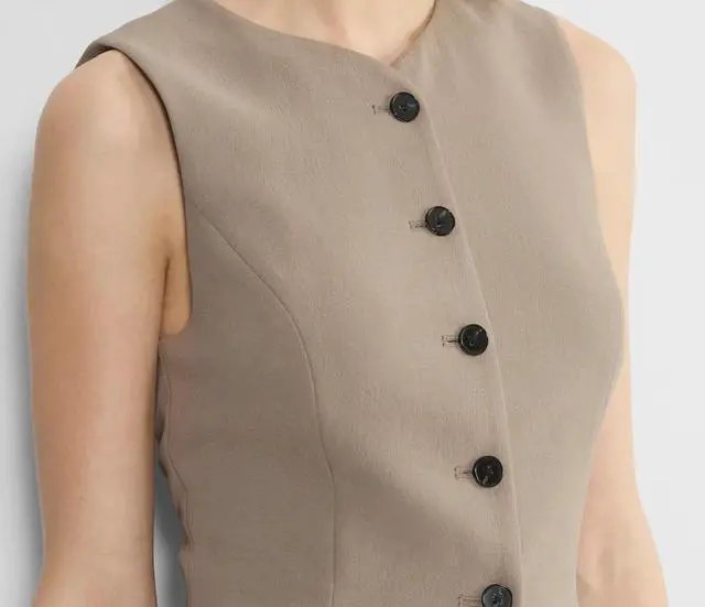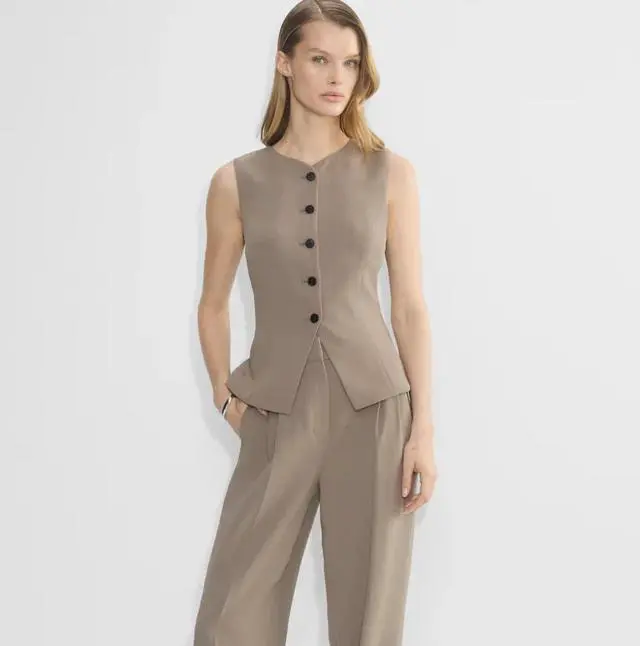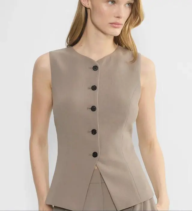 "The flirty office staple. " This button-up vest is a masterclass in expert tailoring, designed to bring a feminine yet professional edge to your wardrobe. Whether worn as a top or a layered accent, its structured silhouette and premium fabric make it an essential for elevated dressing.