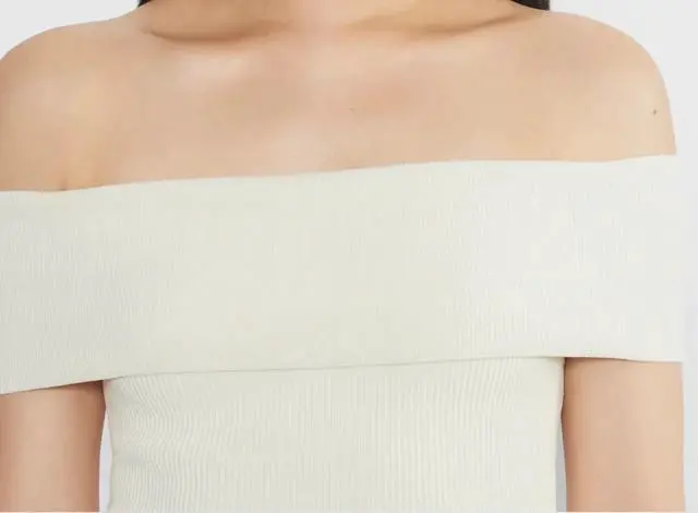 The inspiration? Classical art. \n \nThis is a fully fashioned off-the-shoulder top. Its made with Sculpt Knit our signature figure-enhancing yarn. This compressive, all-season fabric holds you in all the right places to shape and sculpt your form. Like nothing else. This garment is constructed using an Ottoman stitch with close distinct ribs for a structured and textural feel. \n \nFeatures \n \nFully fashioned construction means your knitwear fits you better with flat, smooth seams and less bulk. Plus, it reduces material waste in the production process. \n \nMaterials