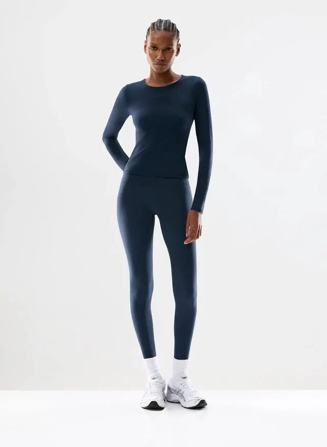 The Fit: BUTTER is a low-compression fabric. It is extremely stretchy and fits true to size (Size 2 = 25" waist). If you are between sizes and want a more "locked-in" feel, you can size down; however, staying true to size ensures the fabric remains fully opaque.