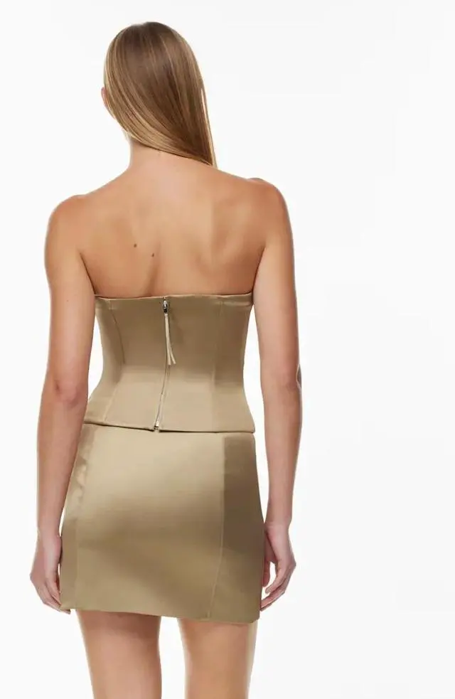 Pro-Tip: If you must wash it at home, hand wash cold only and do not wring the garment, as this can warp the internal bones. Never tumble dry. Use a steamer to remove wrinkles; a hot iron can easily melt or permanently mark the high-sheen satin.