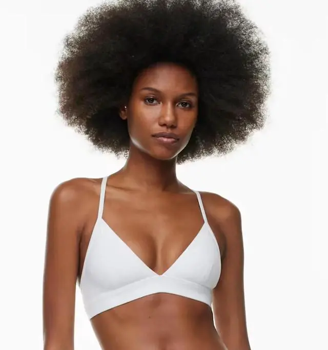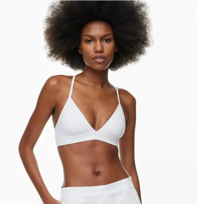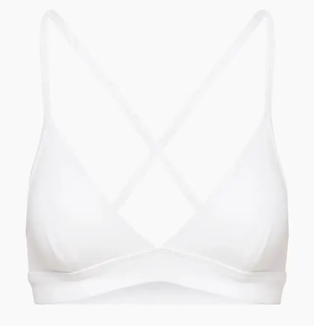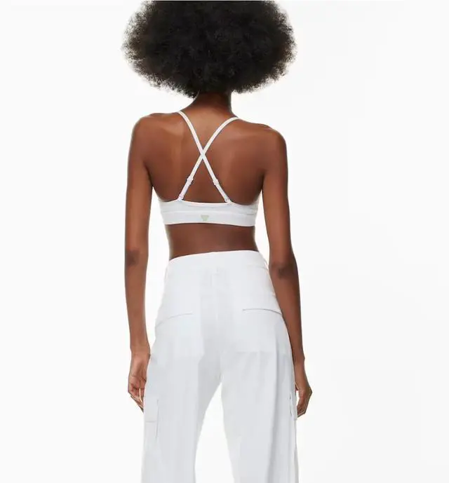 Soft things only \nThis is a lined deep V-neck bra top with adjustable straps that can be worn crossed or straight for variable support. Its made with BUTTER a barely there, buttery soft sweat-wicking fabric that shapes to your body. \n \nFeatures \n \nSweat-wicking fabric \n \nAdjustable straps \n \nExclusive Golden reflective Spiro \n \nMaterials