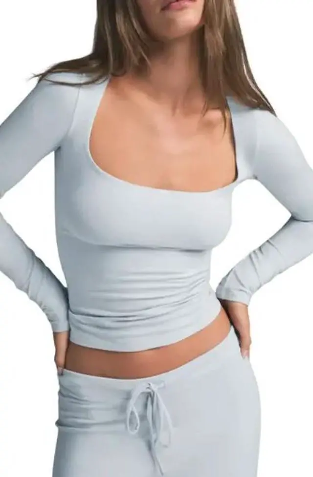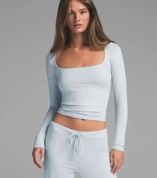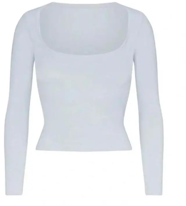 The Skims Cotton Jersey Scoop Neck Long Sleeve Top in "Zen Blue" (Medium) is a "high-performance" wardrobe masterpiece, meticulously engineered to provide "unrivaled softness" and a "perfectly sculpted" silhouette. This "sophisticated and breathable" essential offers the "ultimate strategy" for a "vibrant, fresh" everyday look, making it an "extraordinary staple" for those who desire "impeccable comfort" and a "polished and professional" aesthetic that remains "focused and fresh" throughout your day.