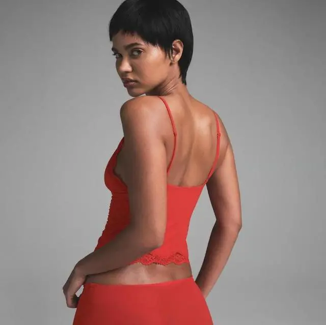 The Skims Fits Everybody Lace Triangle Cami in "Cayenne" (XS) is a "high-performance" intimate masterpiece, meticulously engineered to provide "unrivaled stretch" and a "perfectly romantic" second-skin fit. This "sophisticated and buttery-soft" camisole offers the "ultimate strategy" for a "vibrant, fresh" aesthetic, making it an "extraordinary staple" for those who desire "impeccable comfort" and a "polished and professional" level of allure that remains "focused and fresh" throughout your day.