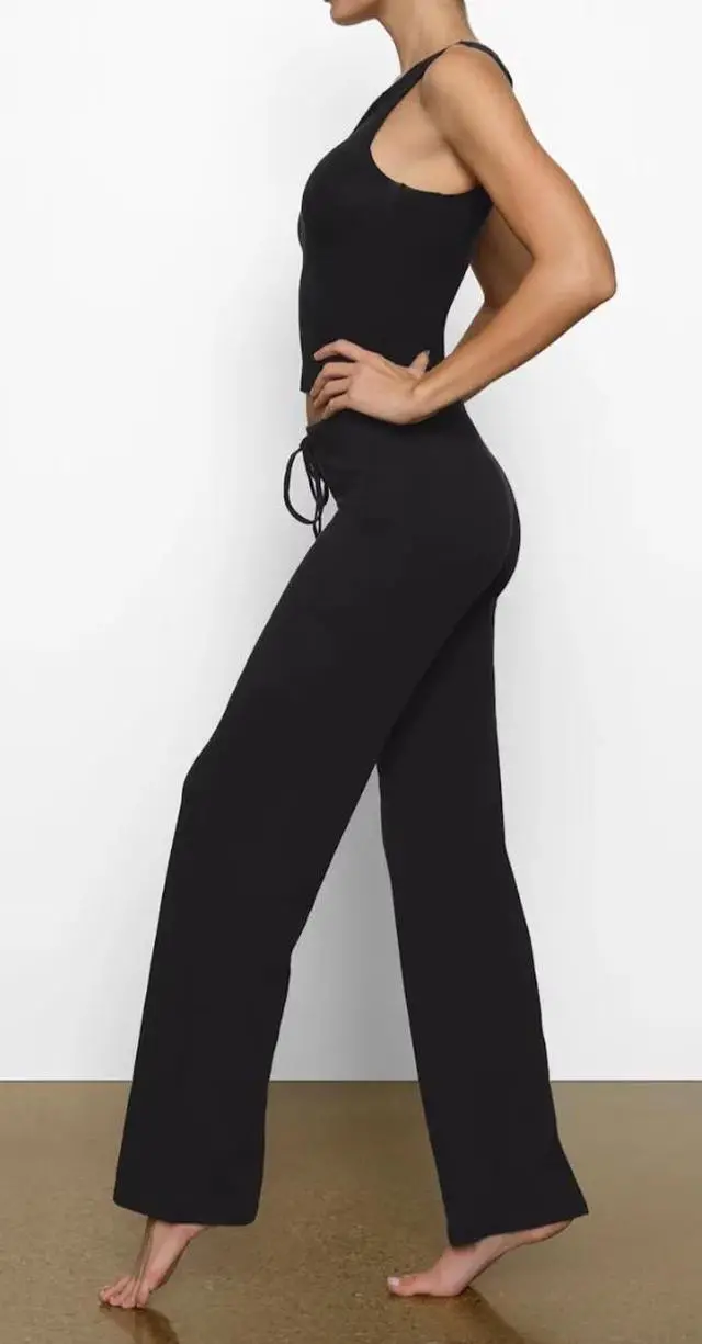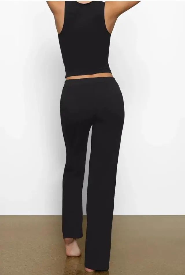 The comfiest lounge staple, designed with your favorite ultra-soft Cotton Jersey fabric. This straight-leg pant style features a ribbed waistband with an exterior drawcord at the waist. Make it a set with the Cotton Jersey T-Shirt. Fits true to size. \n \nInseam length= 32, Straight leg, exterior drawcord at waist, Ribbed waistband, Finished regular bottom hem \n90% Cotton / 10% Elastane \nMachine wash cold, Do not bleach, Tumble dry low, Cool iron, Do not dry clean \nImported